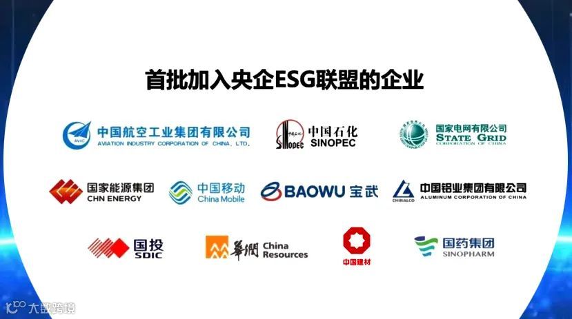 “中央企业ESG联盟”是由国务院国资委社会责任局指导,中国企业改革与发展研究会、中国社会科学院经济研究所、中国社会责任百人论坛牵头发起成立,多家中央企业担任理事长单位的央企ESG研究交流平台,旨在联合各方助力中央企业ESG建设。该联盟首批成员企业包括中航工业、中国石化、中国建材集团等11家央企。