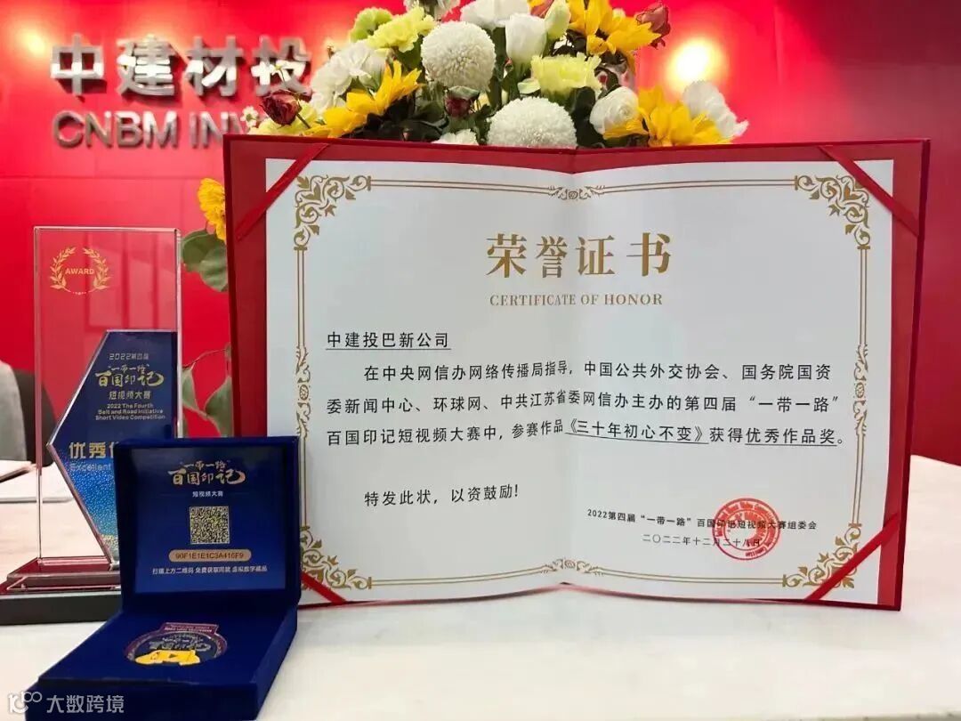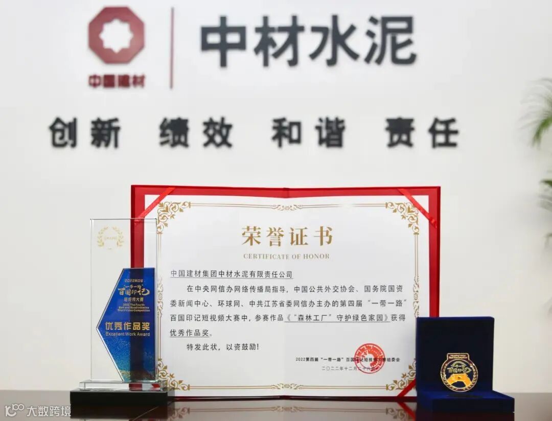 第四届“一带一路”百国印记短视频大赛以“和谐共生·美美与共”为主题,由中央网信办网络传播局指导,中国公共外交协会、国务院国资委新闻中心、环球网和中共江苏省委网信办联合主办。大赛共征集到全球近百个国家和地区超千部作品。中国建材股份所属中材水泥短视频作品《“森林工厂”守护绿色家园》、中建投巴新短视频作品《三十年初心不变》荣获“优秀作品奖”。
