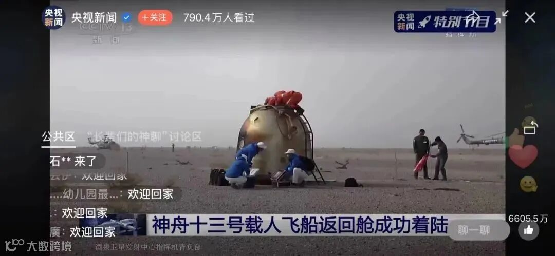 图为神舟十三号载人飞船返回舱安全降落。公司所属新材料企业持续助力中国航天事业发展,开展“卡脖子”技术攻关,努力打造“国之大材”,为航天事业贡献新的“建材力量”。