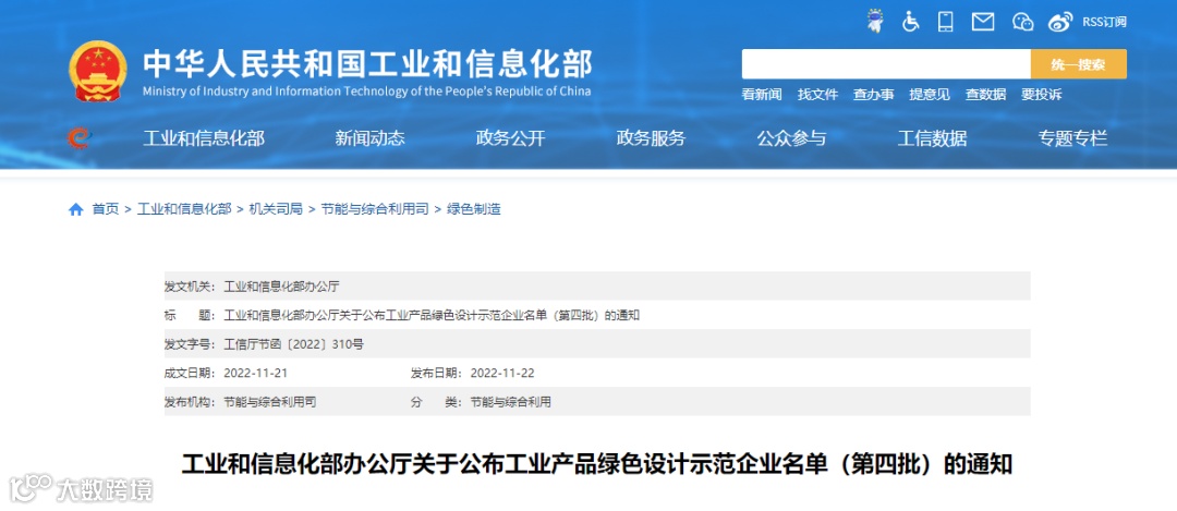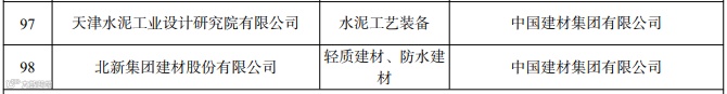 11月22日,工业和信息化部公布了第四批工业产品绿色设计示范企业名单,中国建材股份所属中材科技风电叶片股份有限公司、天津水泥工业设计研究院有限公司、北新集团建材股份有限公司入选。
