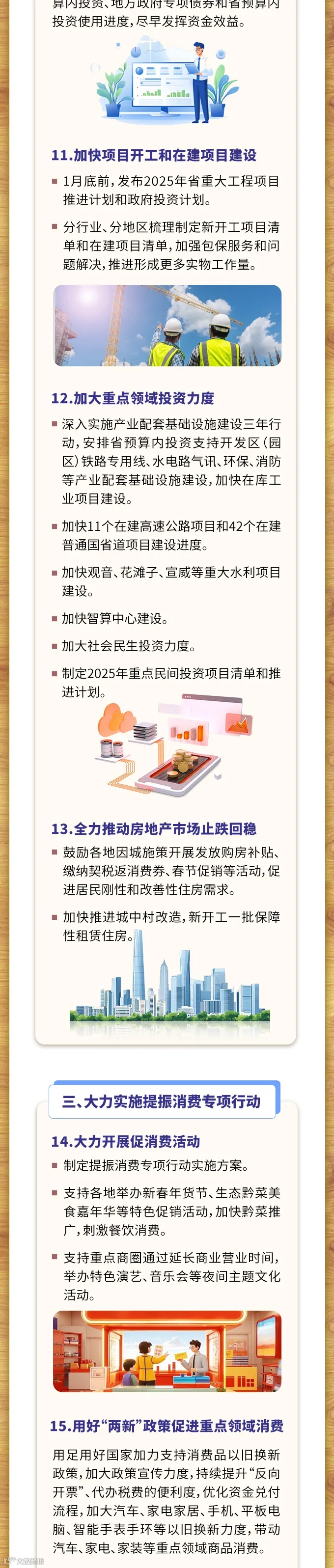 近日,为深入贯彻落实省委十三届六次全会暨省委经济工作会议精神,扎实做好全省一季度经济工作,确保实现“开门红”,省政府办公厅印发了《关于做好2025年一季度全省经济工作实现“开门红”的若干措施》,文件主要内容如下。