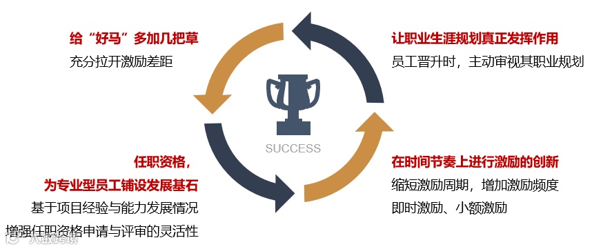 员工的激励也多种多样,包括识别关键人才,拉开激励差距;员工晋升时,主动审视其职业规划;打破传统晋升道路,提供更便捷、灵活的晋升通道;和缩短激励周期,增加激励频度等。