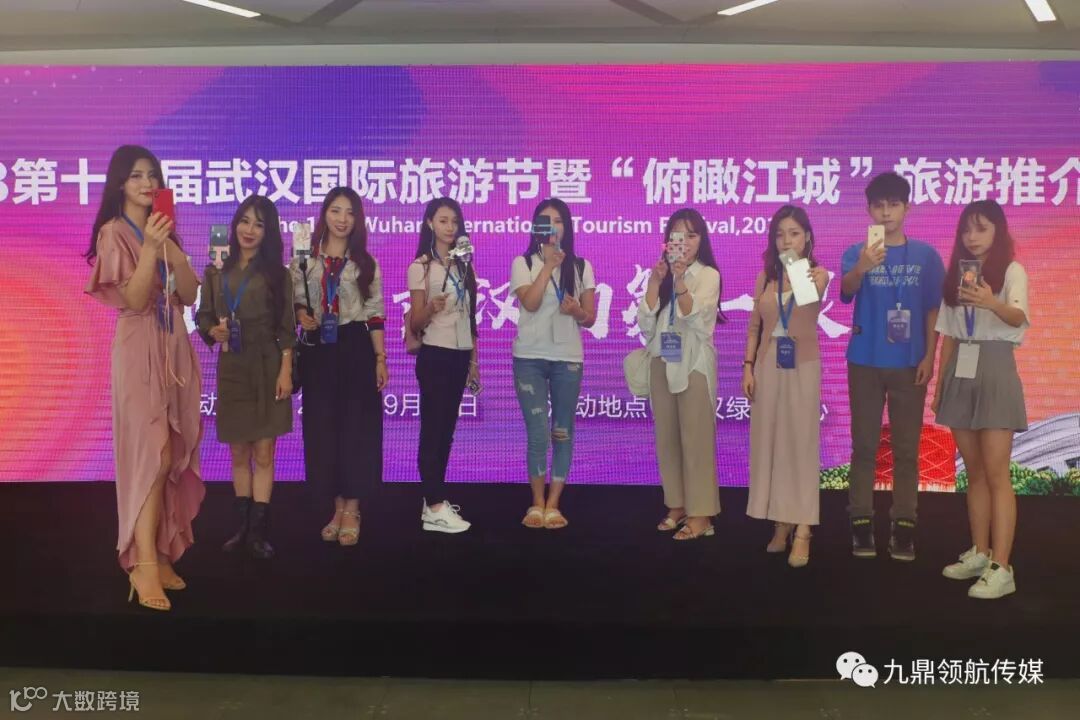 2018武汉国际旅游节开幕式暨百城百社千团游武汉启动活动现场,九鼎领航知名网红齐聚知音码头。