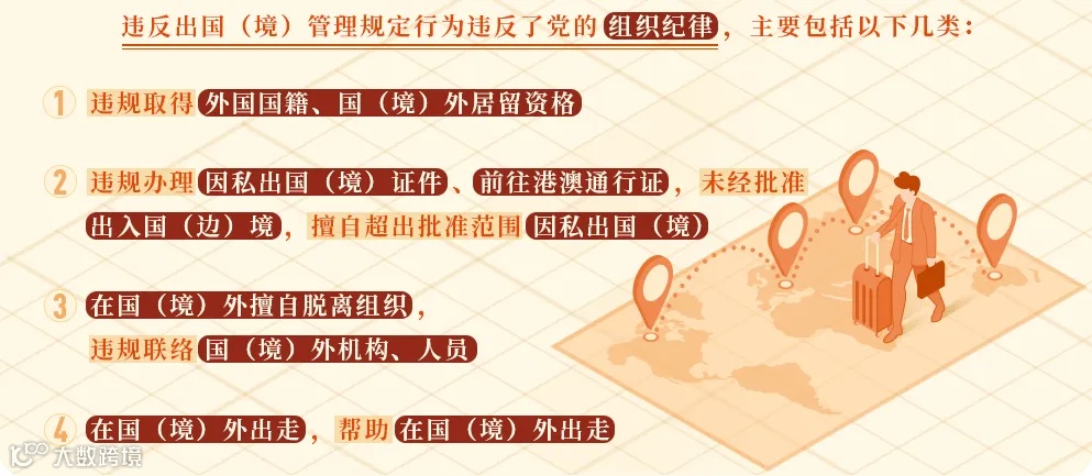 《中国共产党纪律处分条例》对违反出国(境)管理规定行为列出负面清单,作出处分规定。