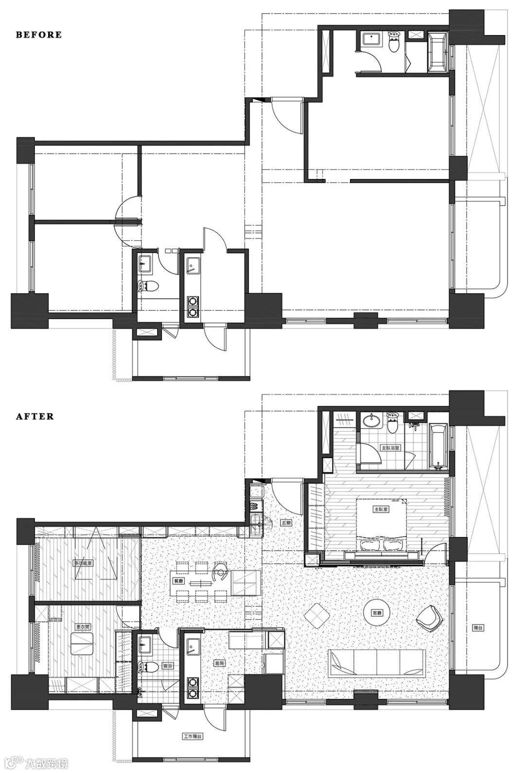 不仅界定区域,亦顺势延展了备餐时