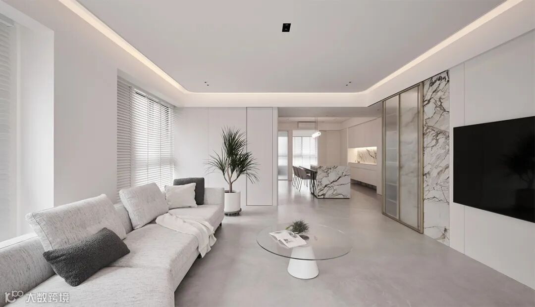从玄关步入客厅时,别于砌砖或是固定隔屏