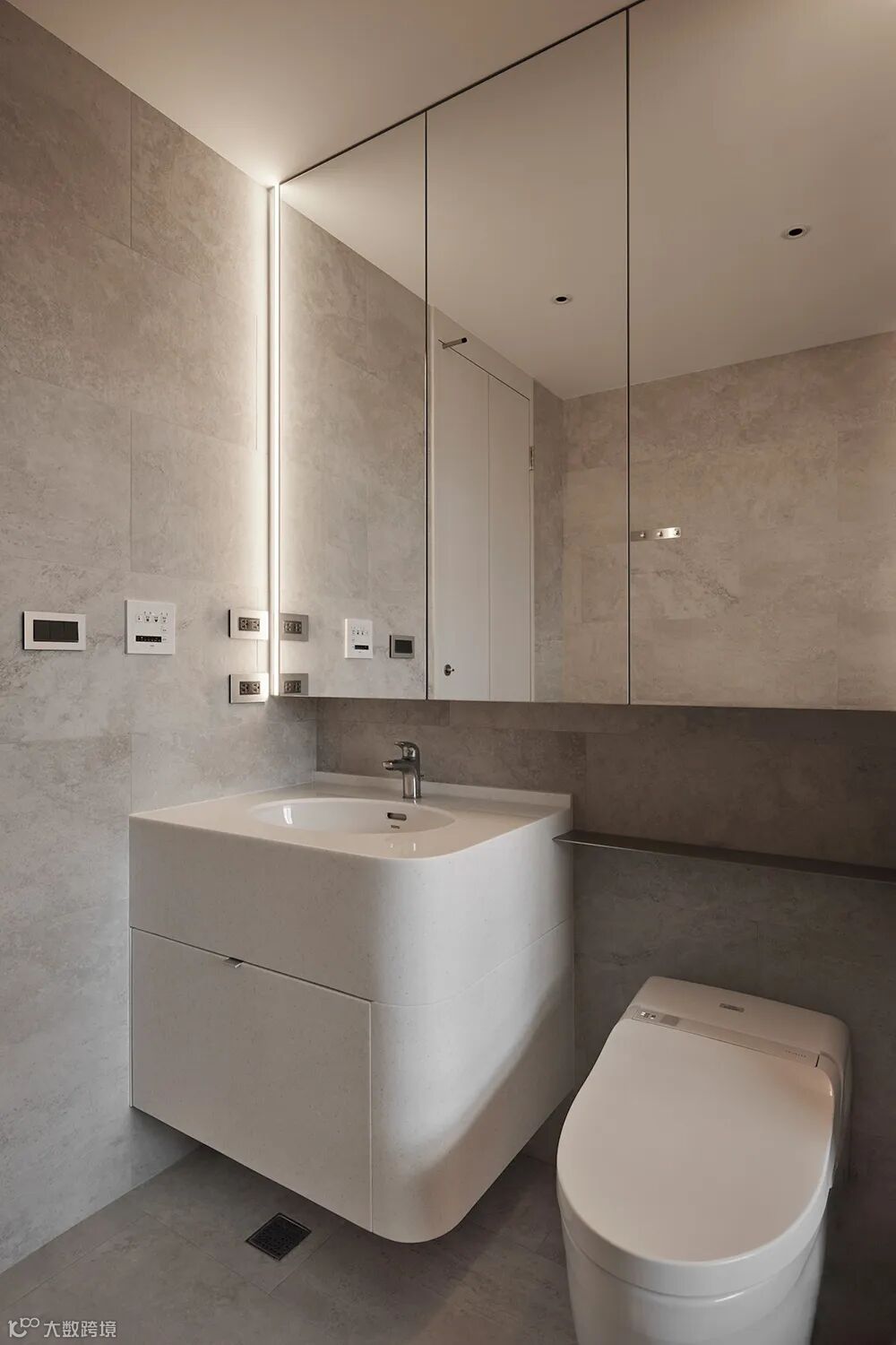 并与玄关弯折入内的悬浮柜体