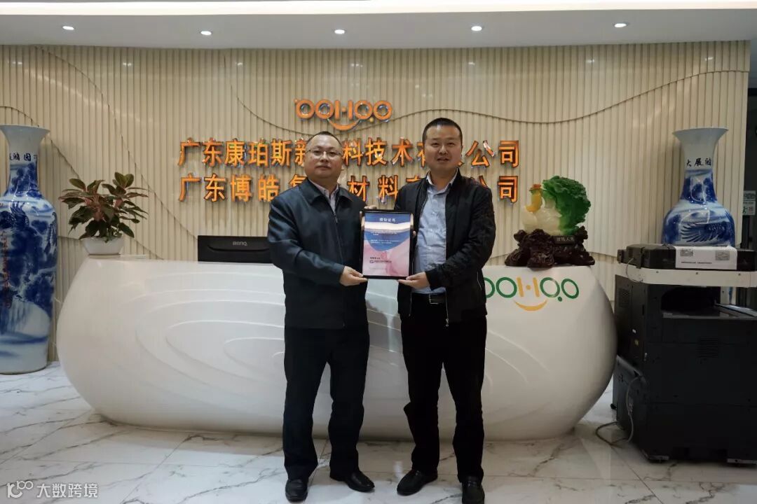 巨石国内销售部魏青总经理代表中国巨石向广东博皓总经理尹秀林授予证书,授权广东博皓复合材料有限公司为中国巨石股份有限公司在广东、海南地区的排他经销商,负责巨石无碱短切原丝毡、无碱方格布在广东、海南地区的宣传、销售、客户服务等相关业务经营及推广事宜。