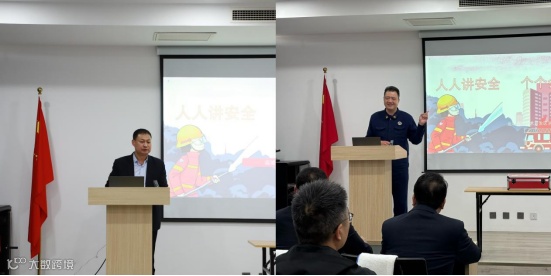 培训开场,公司党支部书记、董事长发表讲话:消防安全,是公司稳健前行的底线,更是守护每一位员工生命与家庭幸福的红线,开展此次培训目的是为了进一步提升全体员工的消防安全意识,增强大家的应急处置能力,筑牢环境治理公司的安全生产防线。希望全体员工以此次培训为新的起点,将学到的消防知识运用到实际工作中,克服侥幸心理。