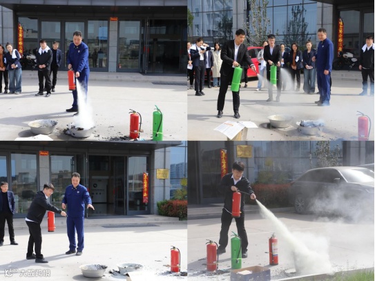 理论知识学习结束后,安环科创部组织员工前往室外开展灭火实训。每位员工都有机会亲手操作灭火器,在实践中熟悉灭火流程,掌握灭火器的正确使用方法。