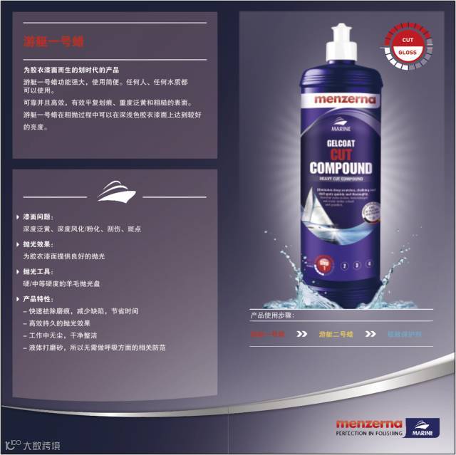 这期介绍的两款产品分别为游艇1号蜡及胶衣漆面游艇液体砂