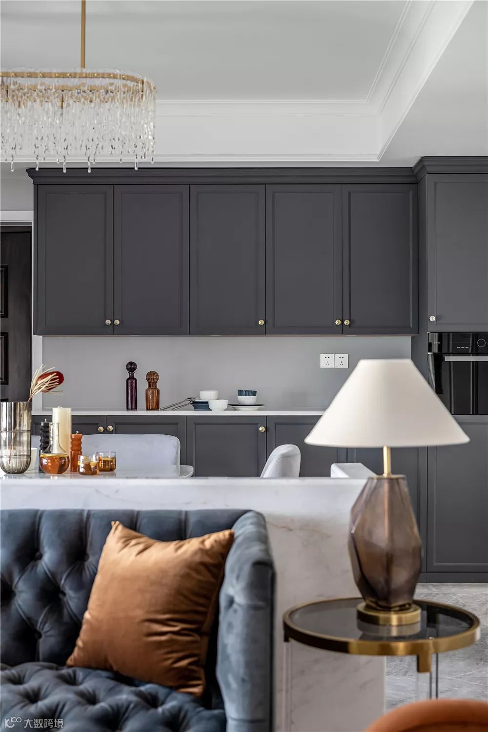 ▲深灰色的餐边柜兼鞋柜,与沙发相互呼应的色调,使得空充满稳重与端庄的气质。