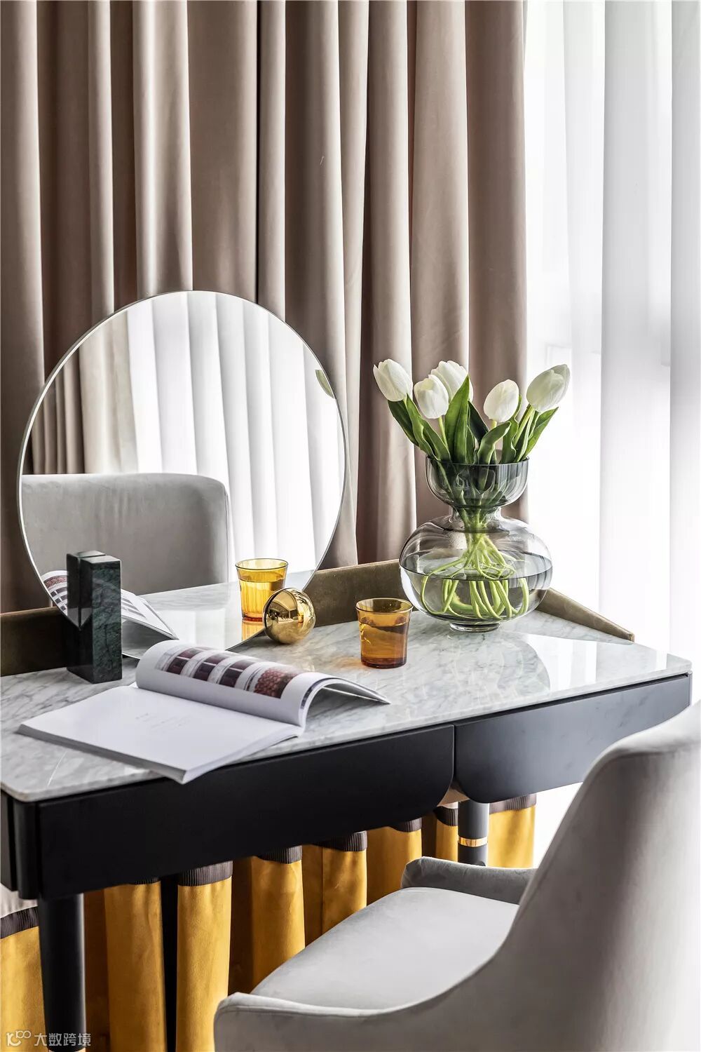 ▲靠窗位置的梳妆台,也为女主人提供了一个端庄优雅的小世界。