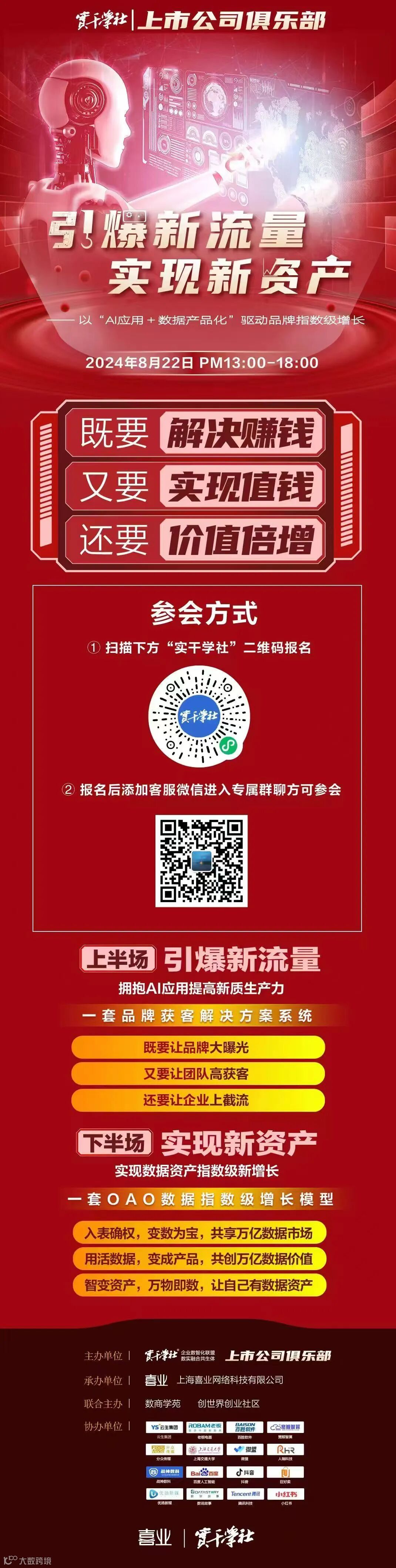 今天下午13:00不见不散!!遵循玩中逆袭善用数智,帮助品牌企业引爆新流量(AI应用),实现新资产(数字资产)!