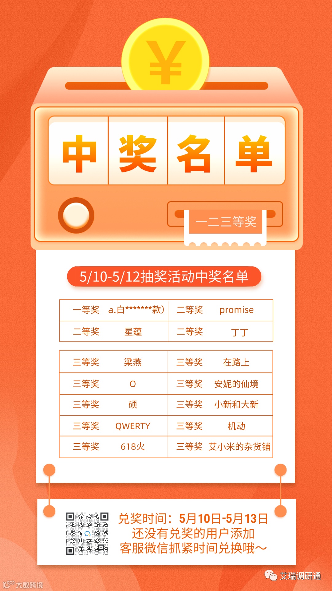 抽奖活动中奖名单!