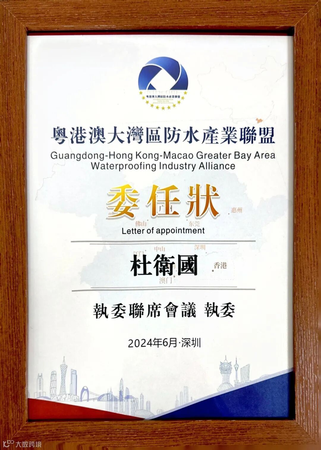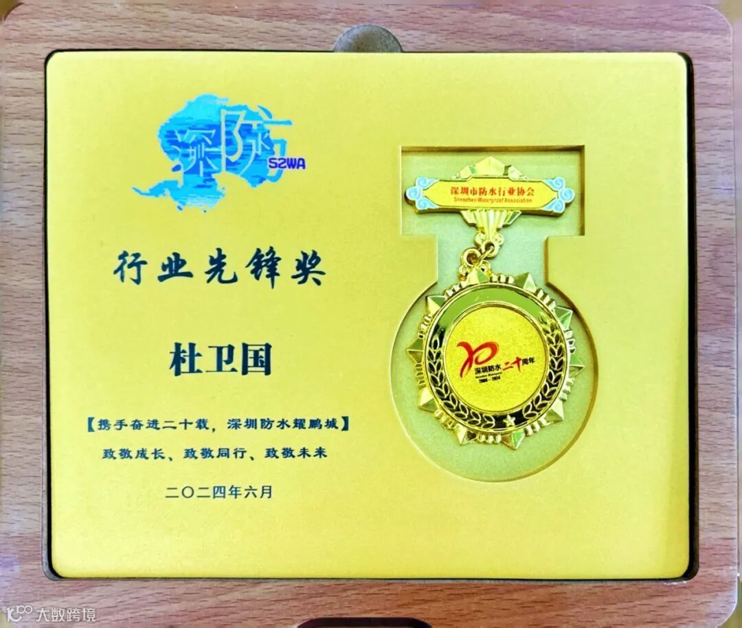 深圳市朗迈新材料科技有限公司董事长杜卫国先生受邀出席了庆典活动,见证了这一重要时刻。在此次盛会中,朗迈公司荣获“风雨同舟奖”,而杜卫国董事长个人荣获“杰出贡献奖”、“行业先锋奖”,并被授予“粤港澳大湾区防水联盟执委”。这些荣誉不仅是对朗迈公司在行业中取得成就的认可,也是对杜卫国董事长二十多年来在防水、地坪领域深耕细作,始终秉持匠心精神与不懈奋斗的崇高礼赞。