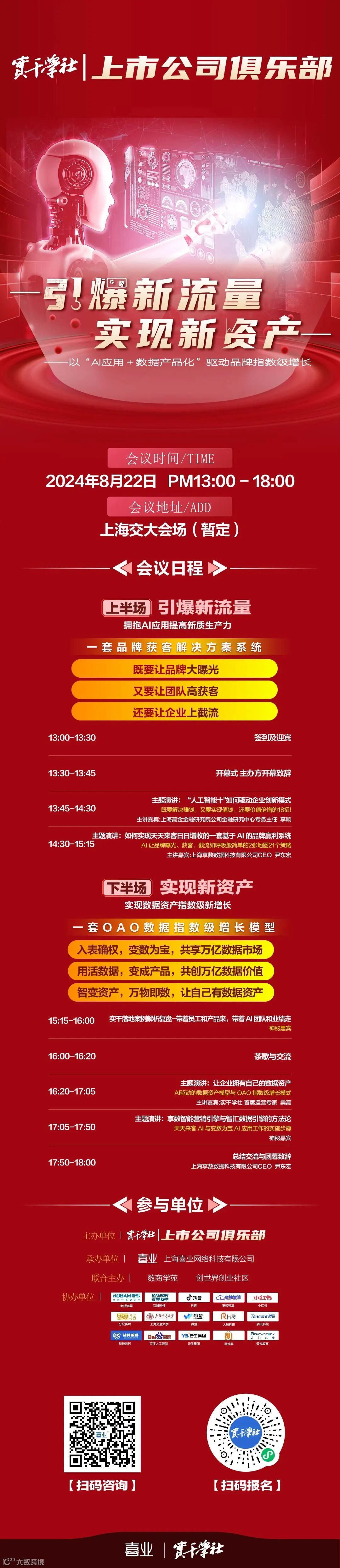 8月22日,我们邀请了众多AI+数据的资深老师现场授课,帮助企业科学升级转型,效率倍增!收益倍增!