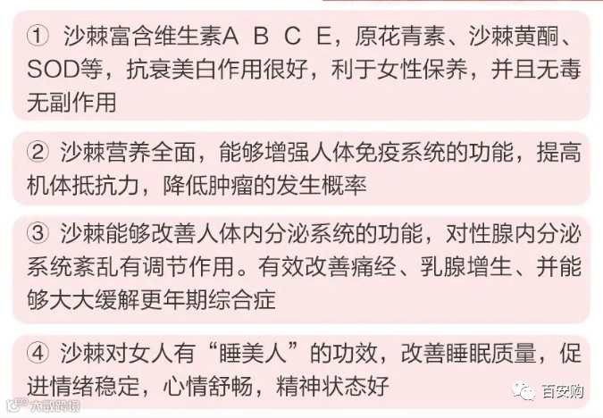 建议女人过了25岁之后就要服用沙棘。因为女人过了25岁身体就开始走下坡路,各器官,功能系统,组织均进入衰退时期。而沙棘可以帮助我们如下改善。
