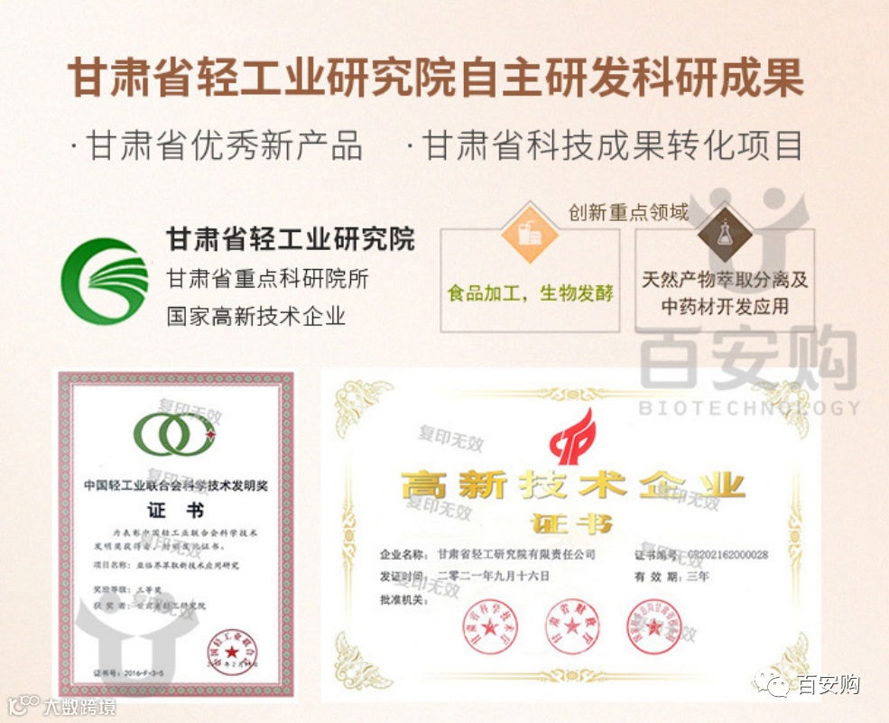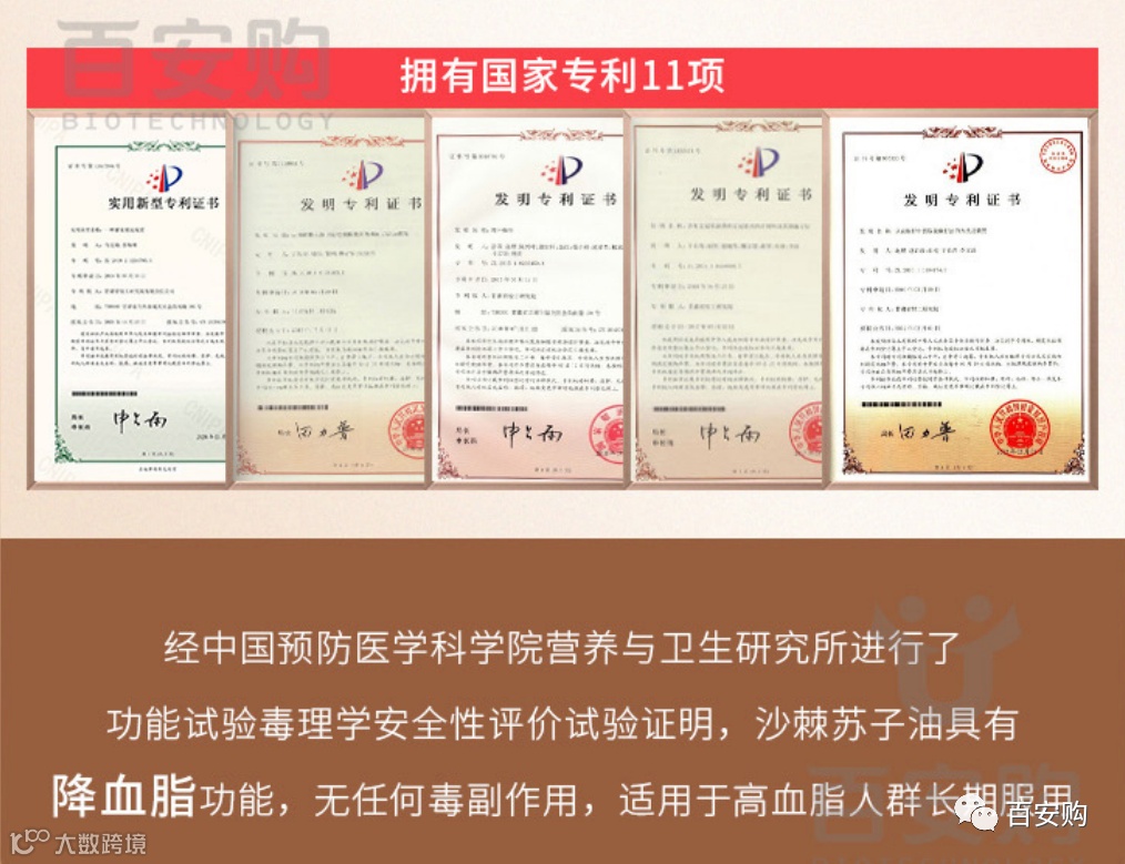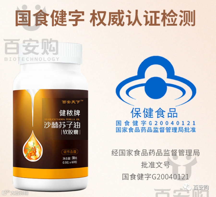 沙棘苏子油软胶囊是国家食品药品监督管理局批准的国食健字号保健食品,是甘肃省轻工业研究院自主研发的科技成果,该研究院是甘肃省重点科研院所,拥有国家专利11项。产品经中国预防医学科学院营养与卫生研究所进行了功能试验证明,具有降血脂功能,无任何毒副作用,适用于高血脂人群长期服用。