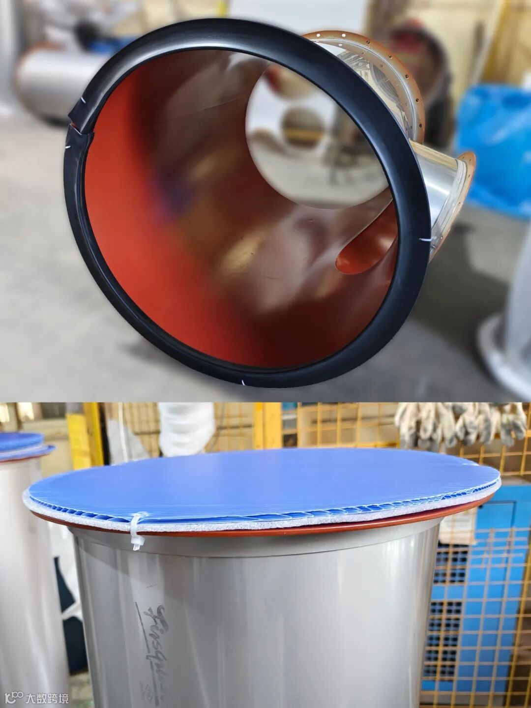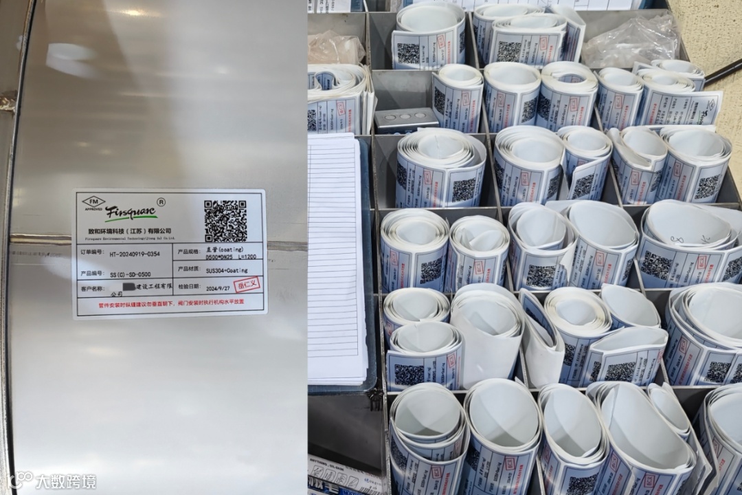 主系统产品(D>300mm)带有不干胶标签,标签涵盖客户名称、订单/产品编号,产品规格/材质,及检验日期。因二次配管口径小并连接多管件,粘贴标签会影响整体美观,故不使用。
