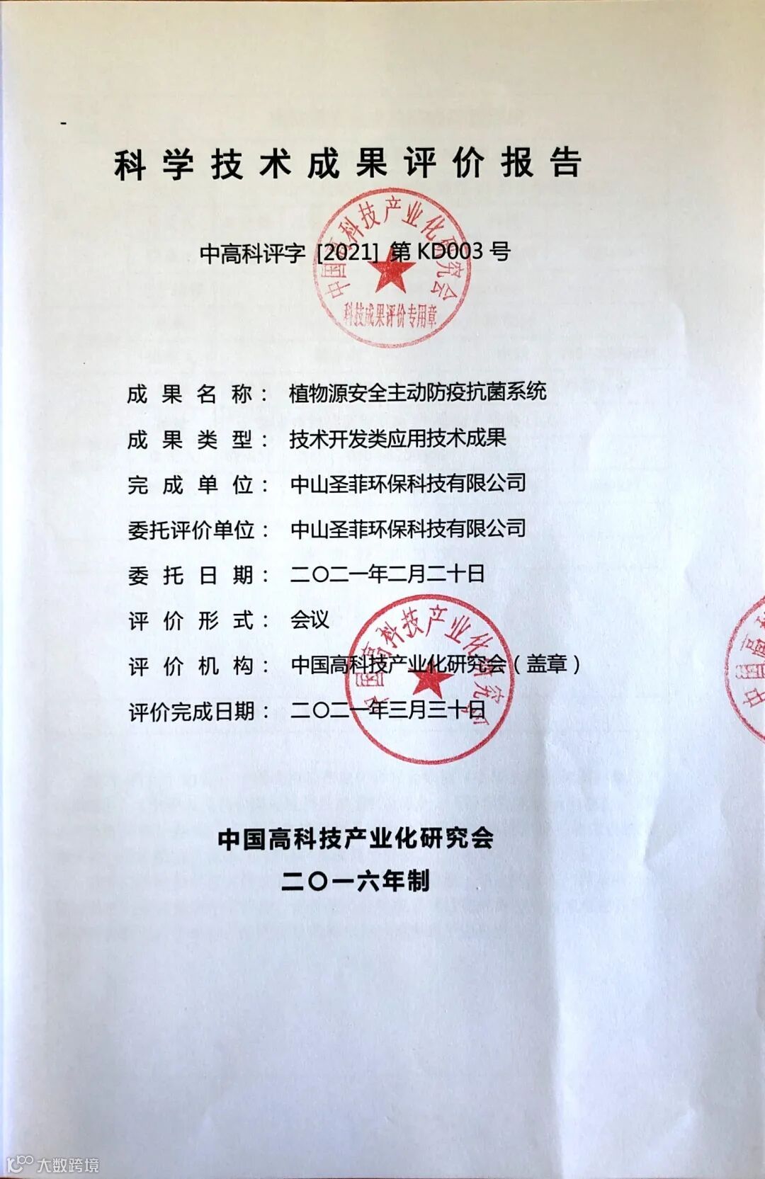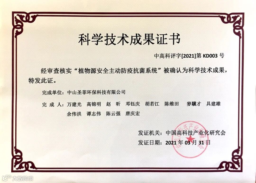 2021年3月30日,由圣菲环保研发的“植物源安全主动防疫抗菌系统”在北京顺利通过了国家科技成果评价会。