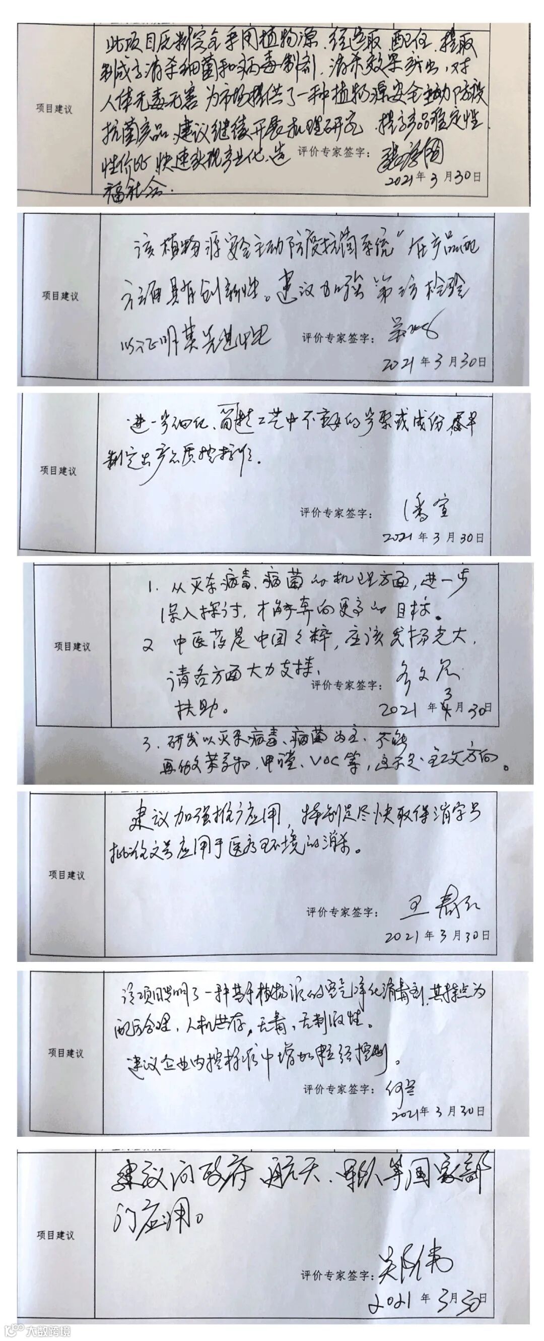 此外,对“植物源安全主动防疫抗菌系统”每一位评审专家就其技术创新、技术经济、推进科技进步和引起社会、经济效益等方面各自提出了专业及详细的建议。