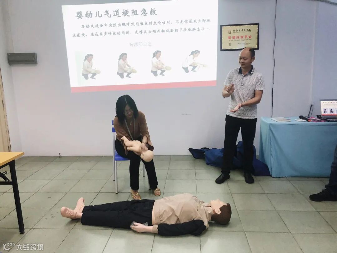 而在此次分享会的最后,由学员开展了一场关于“心肺复苏”的精彩急救课程。