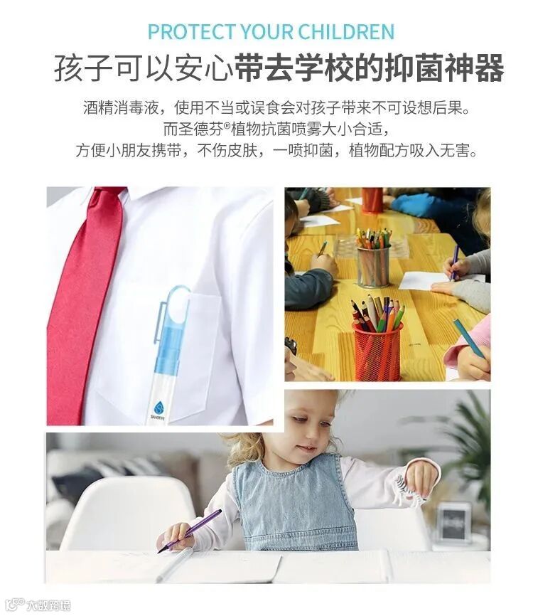 这款圣德芬植物抗菌喷雾也有着针对儿童使用,体积更加小、更加便携的5ml装和10ml装。