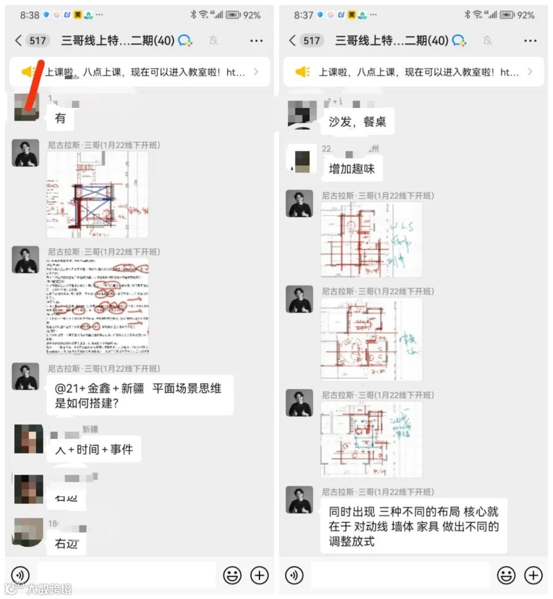 欢迎大家来到三哥方案设计特训营第二期!在第一堂课上,我们深入研究了室内设计的基本原理,了解了方案设计的核心概念和技巧。并通过讲、练、评的教学模式,让学员在第一节课都收获颇丰,释放出了自己的设计思维能力。