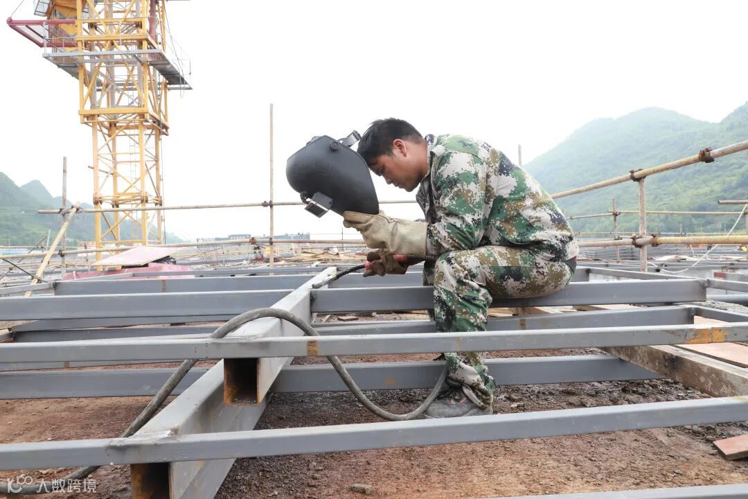 值班调度楼二层浇筑及厂房楼顶窗框焊接剪影