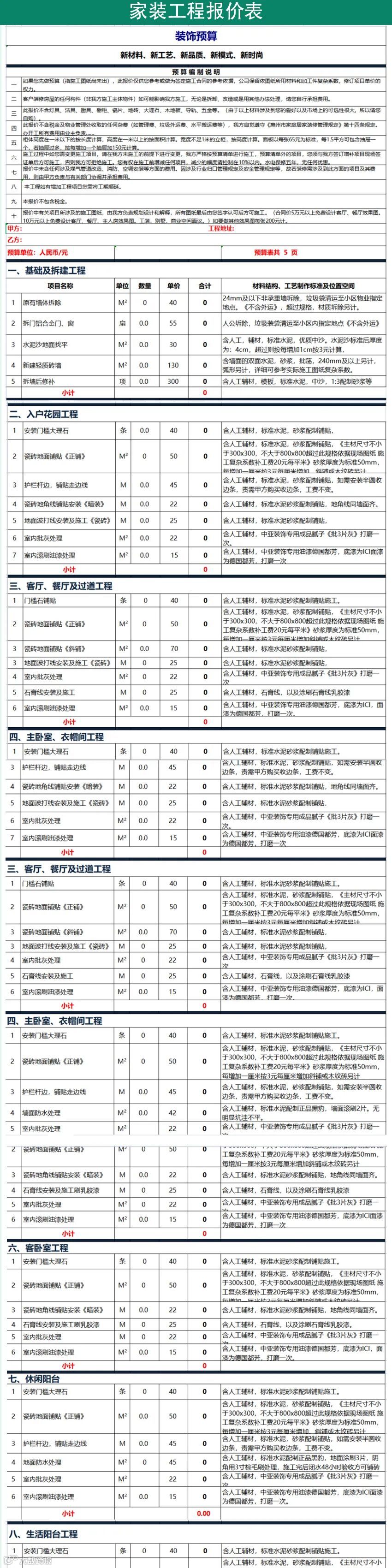 我们为您精心挑选了各类装修项目所需的费用及材料清单,