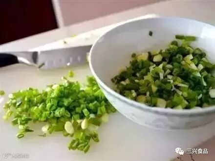 5、香葱切碎,用适量食用油拌匀,用油拌一下可以保持葱的绿色。