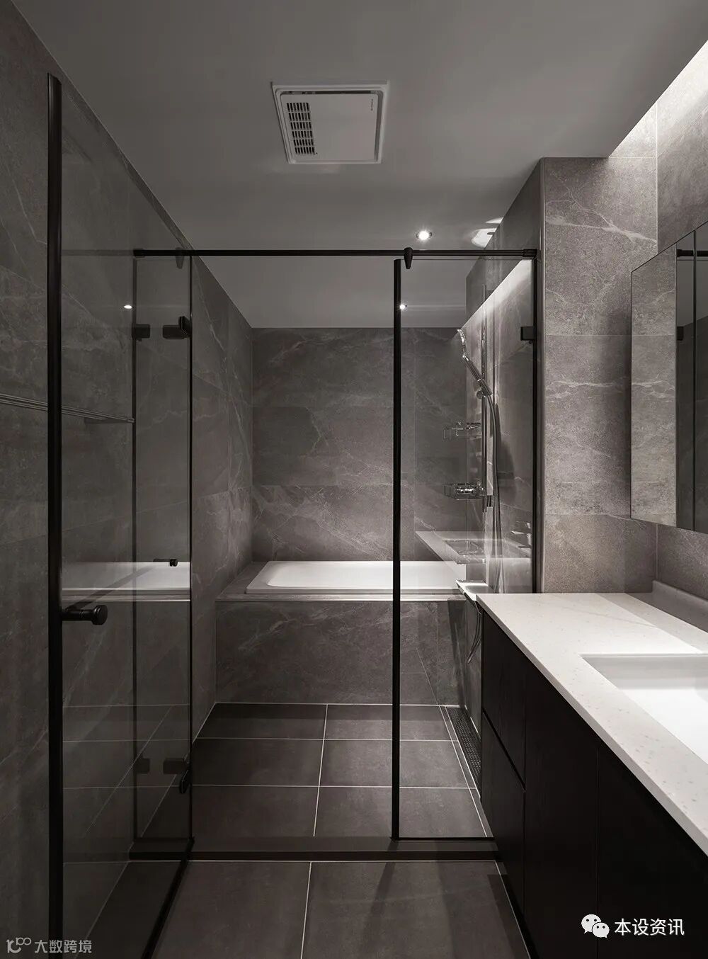 After communication and discussion with two people, from the warm white tone of the door to expand the neutral gray tone, so that the internal and external coordination coherence, convergence of heavy but not heavy, dark and light bathroom scene, so that the bath time accompanied by natural stone texture, diffuse halo a comfortable comfortable pressure feeling.
