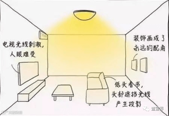 有些业主喜欢在沙发区域阅读。这时,我们可以在沙发区域增加一盏光线柔和照度充足的的小台灯或落地灯,以弥补阅读所需的照度不足问题。