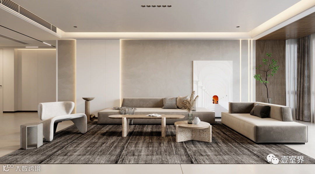 基于上面提到的缺点,无主灯设计应当注意,给予足够的基础照明,可以用射灯阵列排布产生直射光或灯管在灯槽产生漫反射光,客厅的墙面材料颜色尽量选择浅色的,以防止光线被深色的墙面“吸收”。