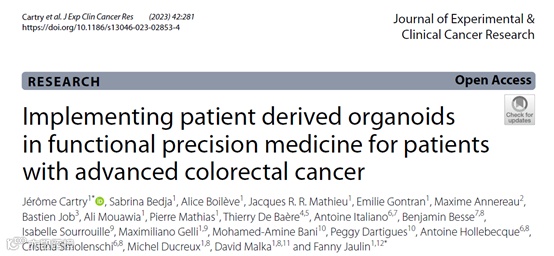 [1] Cartry J, Bedja S, Boilève A, et al. Implementing patient derived organoids in functional precision medicine for patients with advanced colorectal cancer[J]. J Exp Clin Cancer Res, 2023, 42:281. https://doi.org/10.1186/s13046-023-02853-4