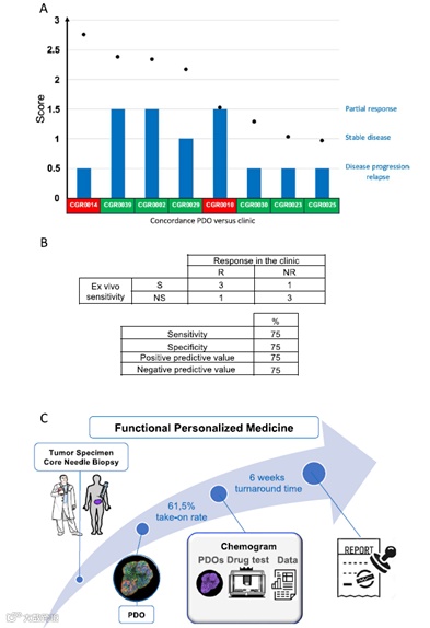 该研究表明,基于PDOs的药物测试可以在常规临床实践的框架内实现。Chemogram可以为临床医生定制患者的治疗提供一种决策工具。因此,基于PDOs的功能精准肿瘤学现在应该在介入性试验中进行测试,评估其对没有可激活基因组改变或对标准护理治疗产生耐药性的患者的临床效果。