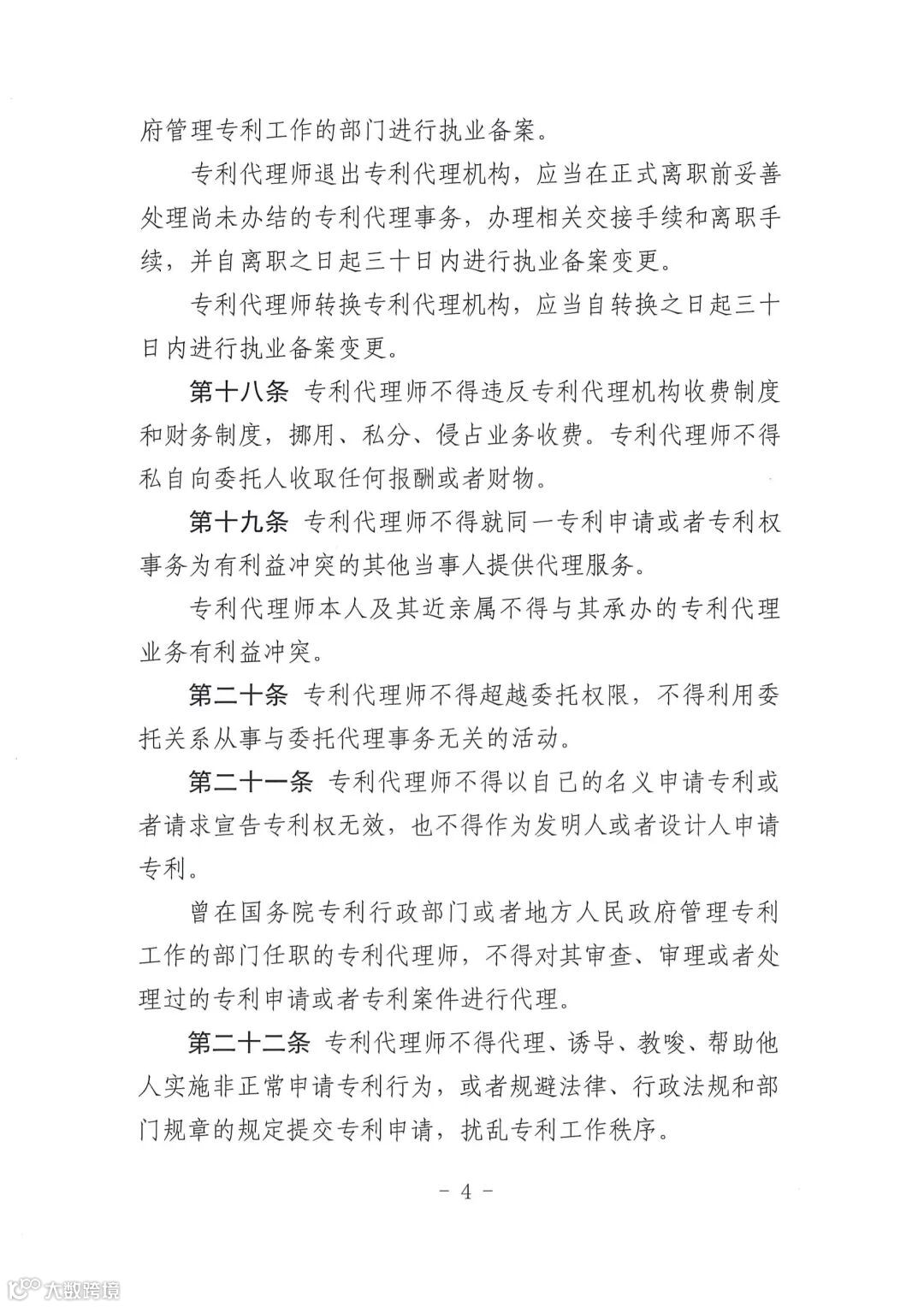 以下是《专利代理职业道德与执业纪律规范》全文:
