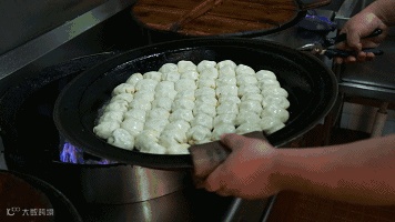 外皮底部煎得金黄脆香,个个形态饱满。撒上芝麻、香葱,闻起来香香的,咬一口,软而松,肉馅鲜嫩,满嘴汤汁,颇受人喜爱。记住,一定要出锅趁热吃为佳。
