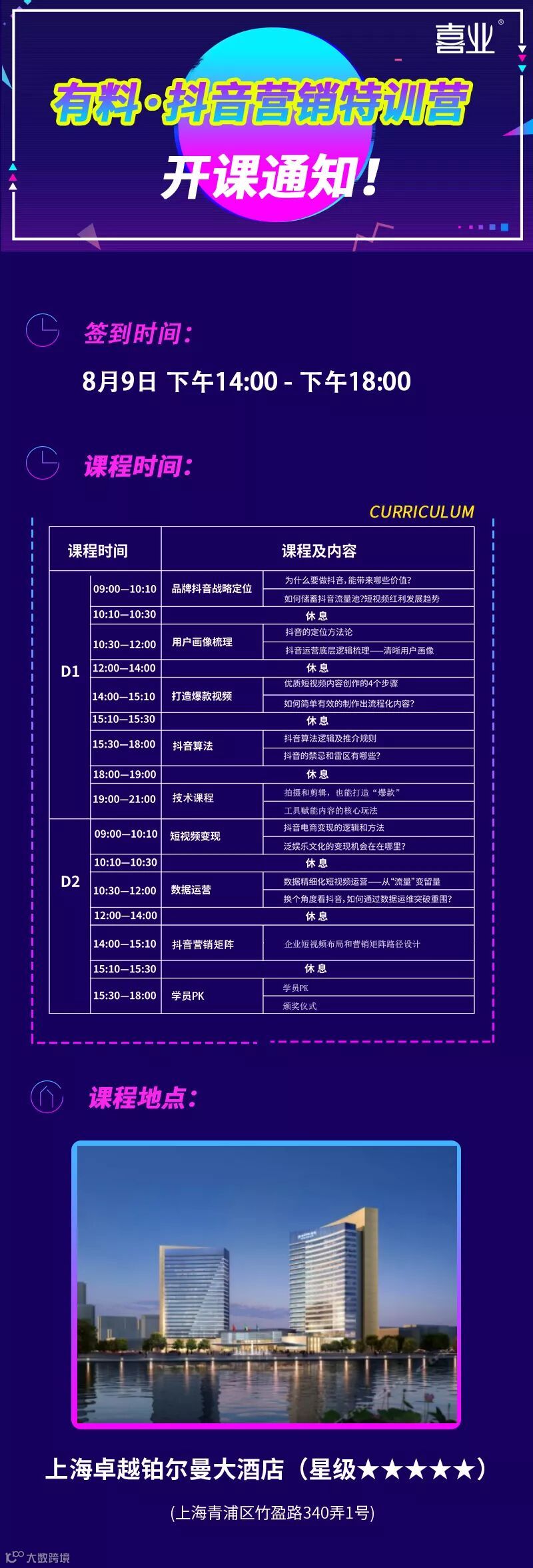 2019 第三期8月10-11日有料学堂 抖音营销特训营 开课通知