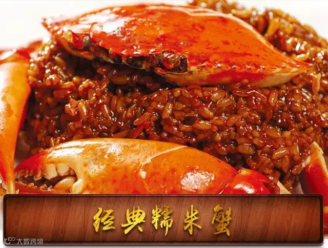 一碗热气腾腾的糯米蟹端上桌,偌大一只红彤彤的蟹以其诱人的睡姿卧于其上,满满一笼糯米饭被盖在蟹壳之下、蟹脚之中。蟹肉、饭粒,散发着大地与海鲜馈赠的奇香,只是看一眼,闻下味,就已经垂涎三尺。