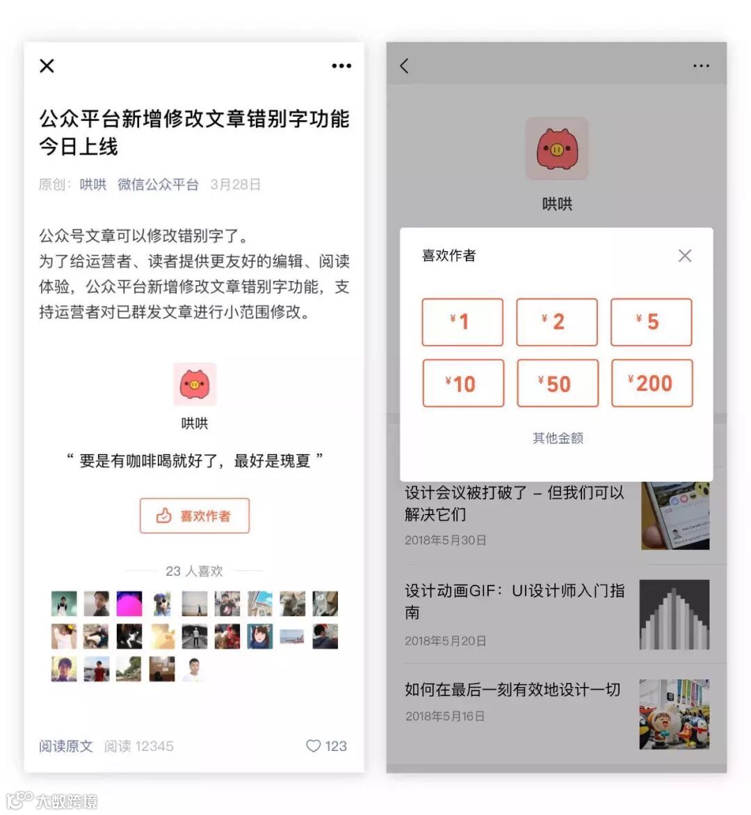本次升级公众号赞赏功能,名称从“赞赏”变成“喜欢作者”,读者赞赏从原来绑定公众号账户到现在直接对接作者账户,以及重新纳入iOS系统,平台更是不收取任何中间费用,这一系列动作都极大的激励了内容创作者。