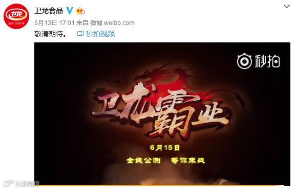 昨天下午,卫龙食品官微上发布了一则预告短片。表示将于6月15日公测一款名叫《卫龙霸业》的手游。这部手游声称是战争手游的革新大作。比贪吃蛇更多场景,比俄罗斯方块更炫特效,比王者农药、阴阳师更快升级。