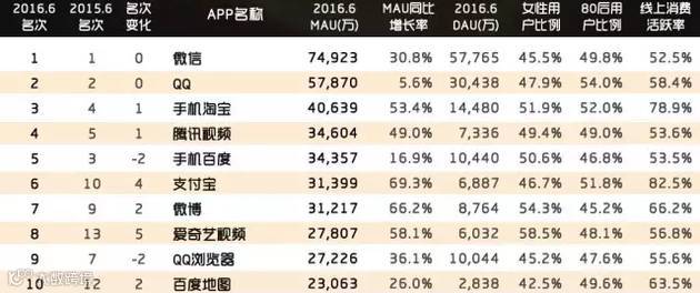 微信几乎毫无悬念的继续霸占榜首