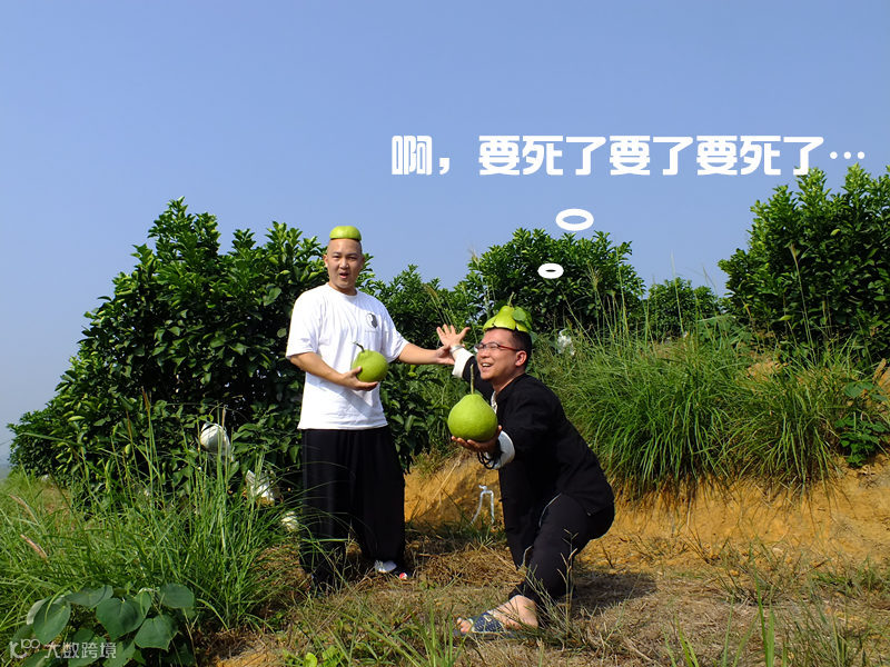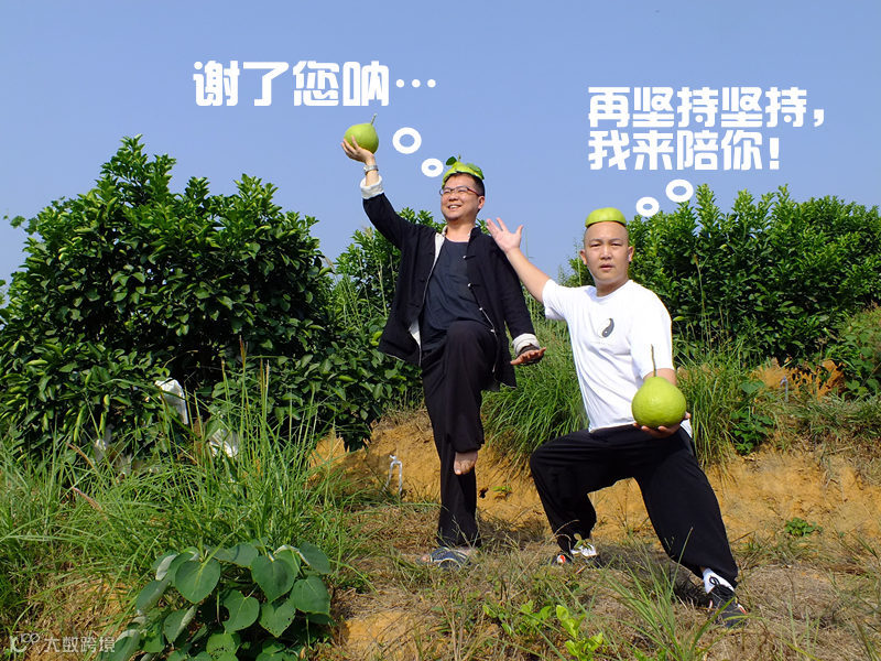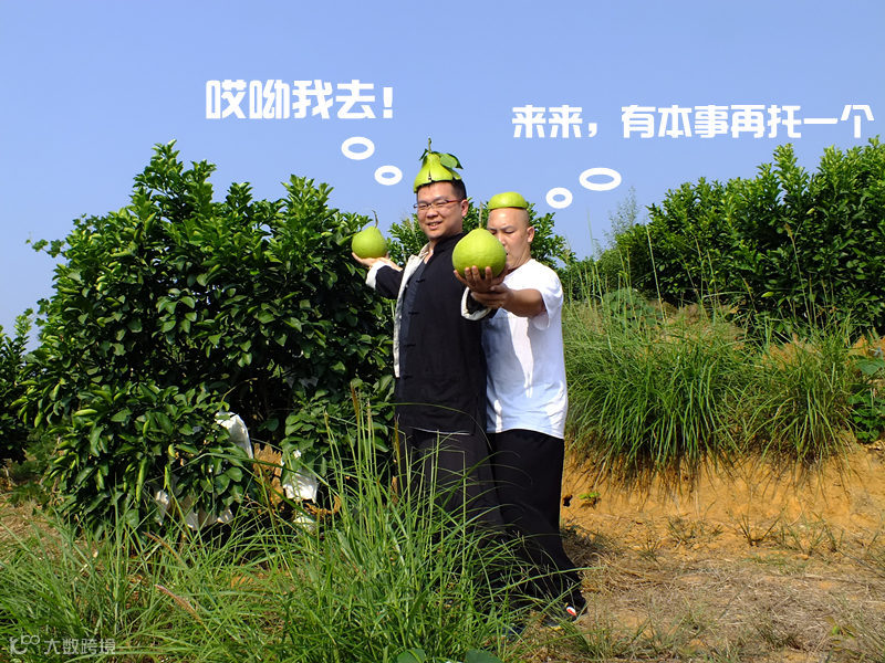 经过长达N小时的激烈博弈,大湿最终以造型取胜,获得丹霞山金喆园谢总亲赠柚子一枚。金喆园所产柚子皆萃取6载大自然风霜雨露之精华,于人造音乐熏陶环境中无添加任何化学物质长成。大湿喜不自禁。