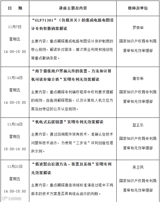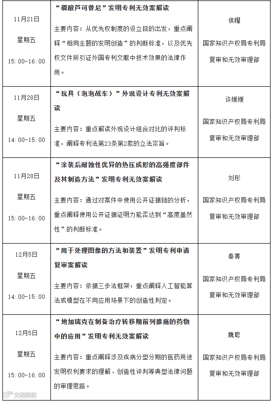 专利文献馆2025年11-12月公益讲座计划:“2024年度复审无效重大案件解读”专题