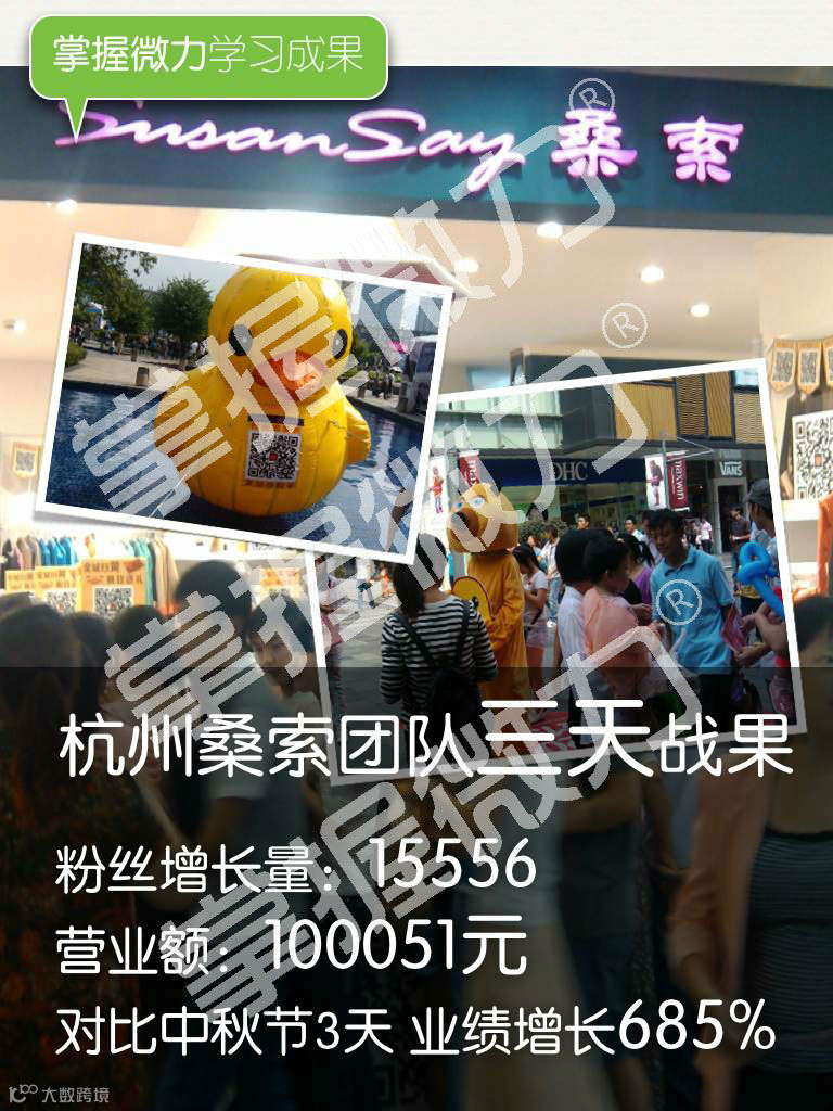 桑索女装参加课程后,国庆3天扫码获得增粉1.5万多人,业绩增长600%以上全程录像。
