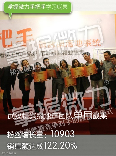 课程已经接近尾声,三天以来我们收获了非常多微营销知识!很实战也很震撼!我们已经和掌握微力达成代理合作!我们之前听过市面上很多很多知名的专家们的微营销课程,我发现掌握微力的课程给我的收获是最大的!我想说:只有真正做过社会化产品、服务过足够多的企业,有足够实战经验的老师才能带来真正的收获!