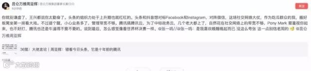 Opera公司CEO周亚辉提醒张一鸣:为了中标政府云业务,腾讯的几个老大花在社交网络上的带宽不够。马化腾要是重视起来,头条抖音对标微信的仗不好打。