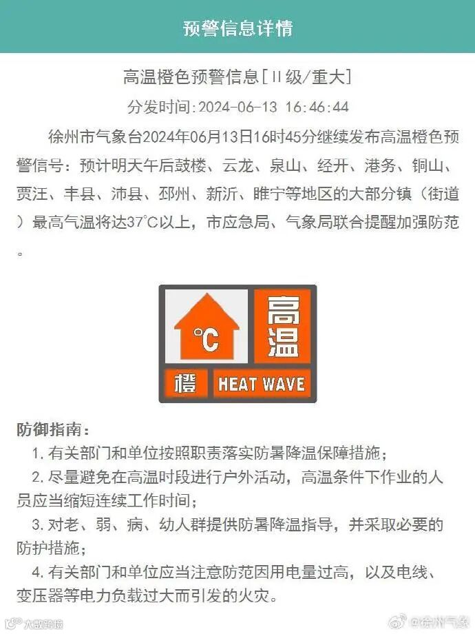 继续发布高温橙色预警信号